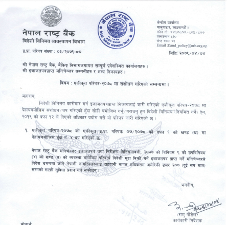 विदेशी मुद्रा सञ्चिति घट्दै गएको अवस्थामा विदेशी मुद्रा जोगाउन केन्द्रिय बैंकले यस्तो व्यवस्था गरेको हो। यस अघि बैंकहरुमार्फत १५०० सम्मको सुविधा पाइन्थ्यो।