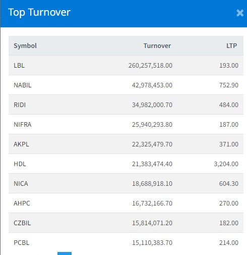 त्यस्तै, नबिल बैंकको ४ करोड २९ लाख, रिडी हाइड्रोपावरको ३ करोड ४९ लाख, निफ्राको २ करोड ५९ लाख र अरुण काबेली पावरको २ करोड २३ लाख रुपैयाँमाथिको कारोबार भएको छ ।